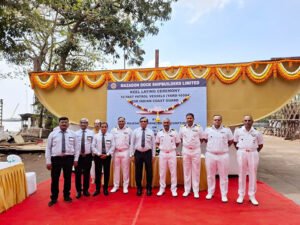 New Delhi, 6 April. Keel laying ceremony for Fast Patrol Vessel-4 (FPV) (Yard 16504) along with plate cutting ceremony for FPV-7 (Yard 16507) of 14 FPV project (Yard 16501-14) for the Indian Coast Guard was held at Mazagon Dock Shipbuilders Limited (MDL), Mumbai on 6 Aprril, 2026.